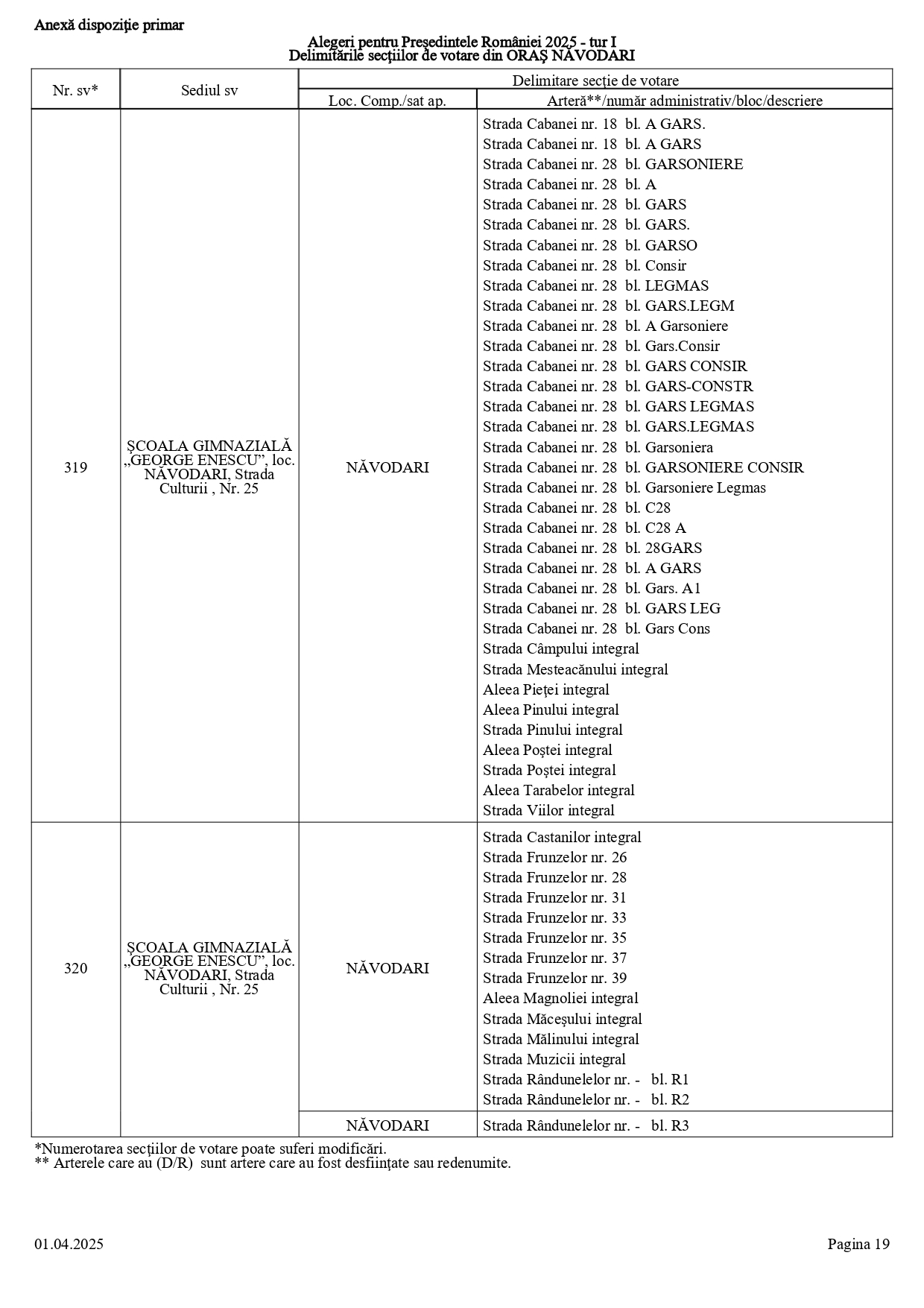 Delimitarile sectiilor de votare pentru alegerile prezidentiale 2025
